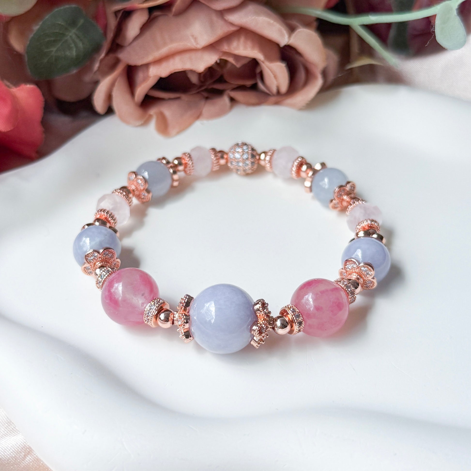 Crystal used: Grade A Lavender Jade, Rhodonite in Calcite, Rose Quartz