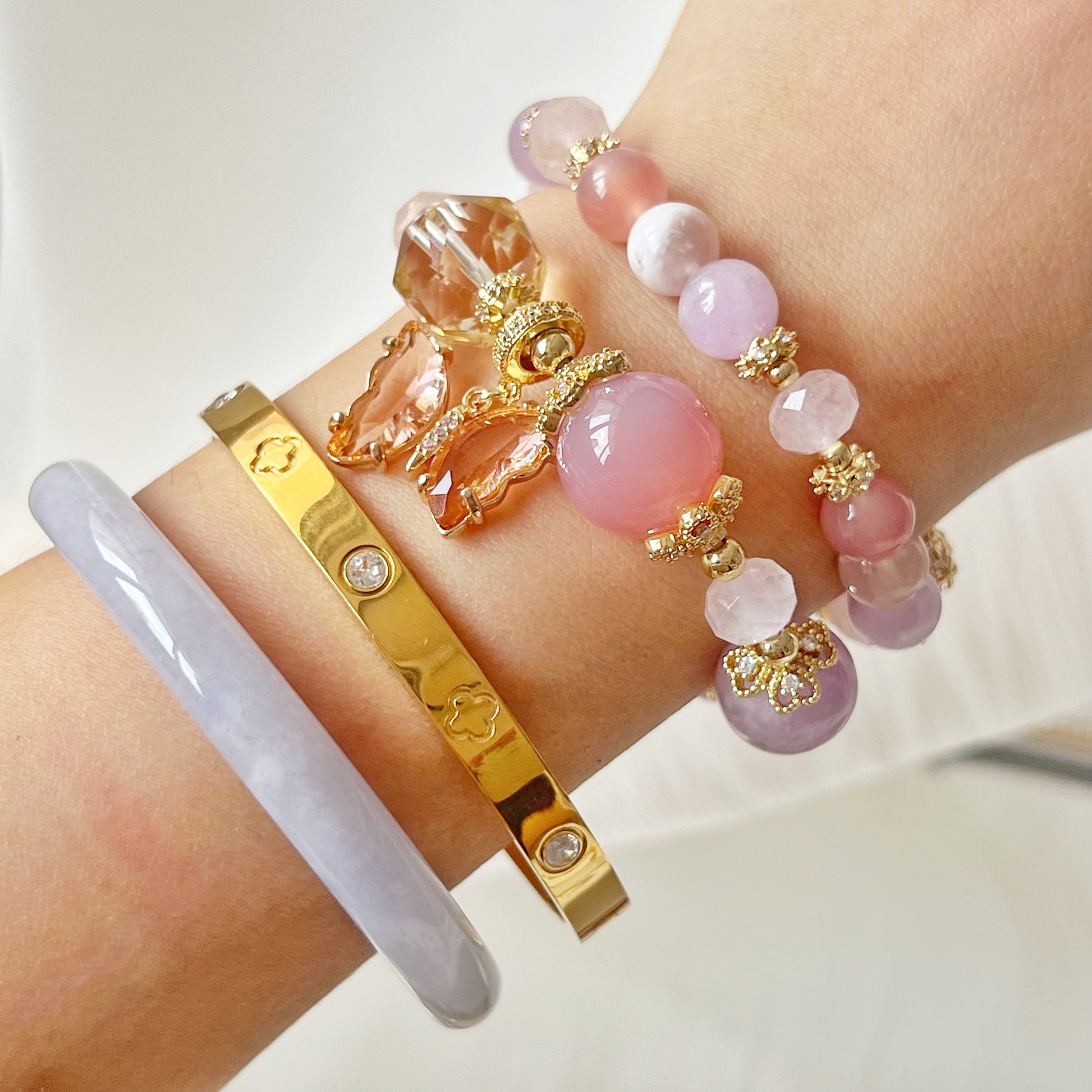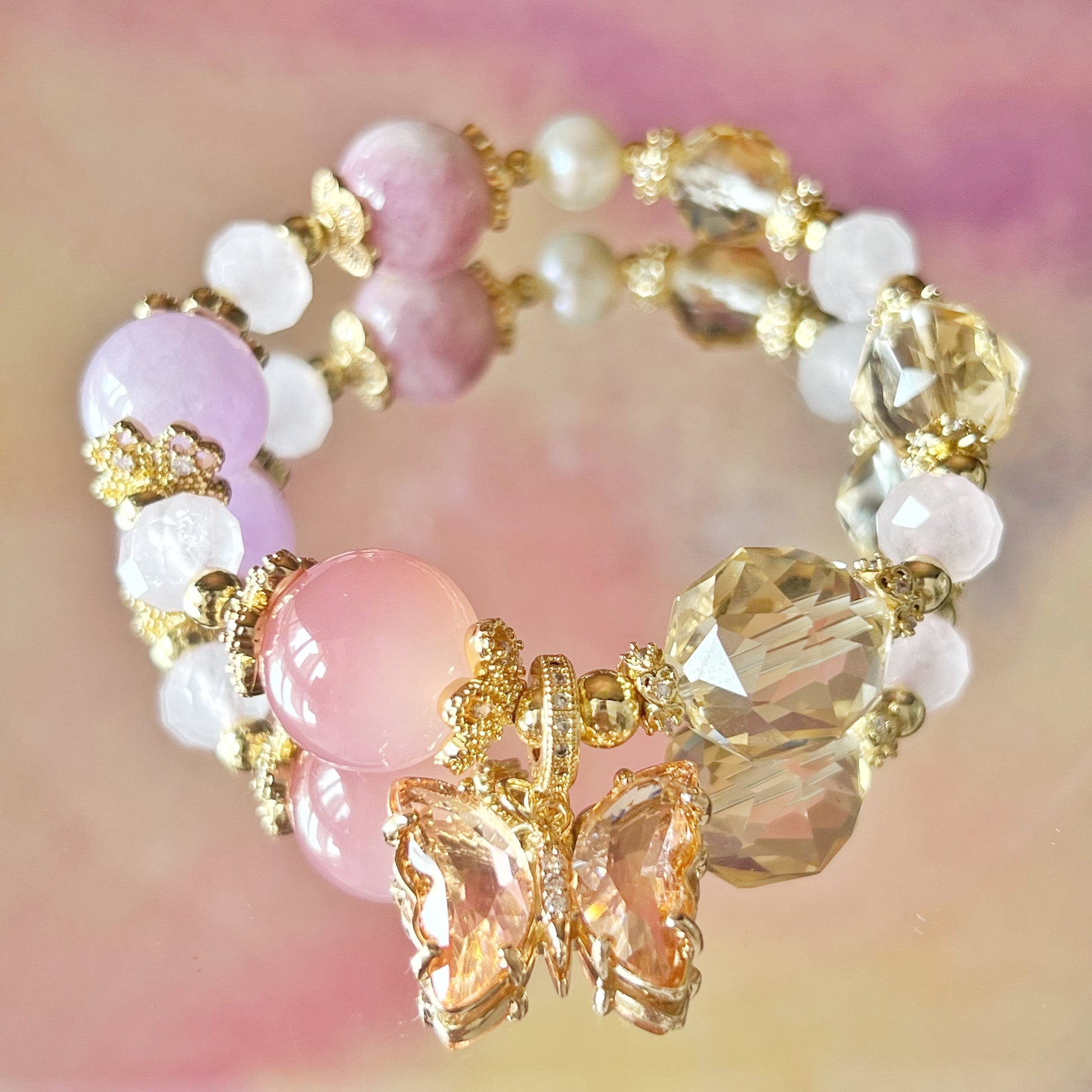 Kunzite, YanYuan Agate, CItrine, Rose quartz and Sakura Tourmaline