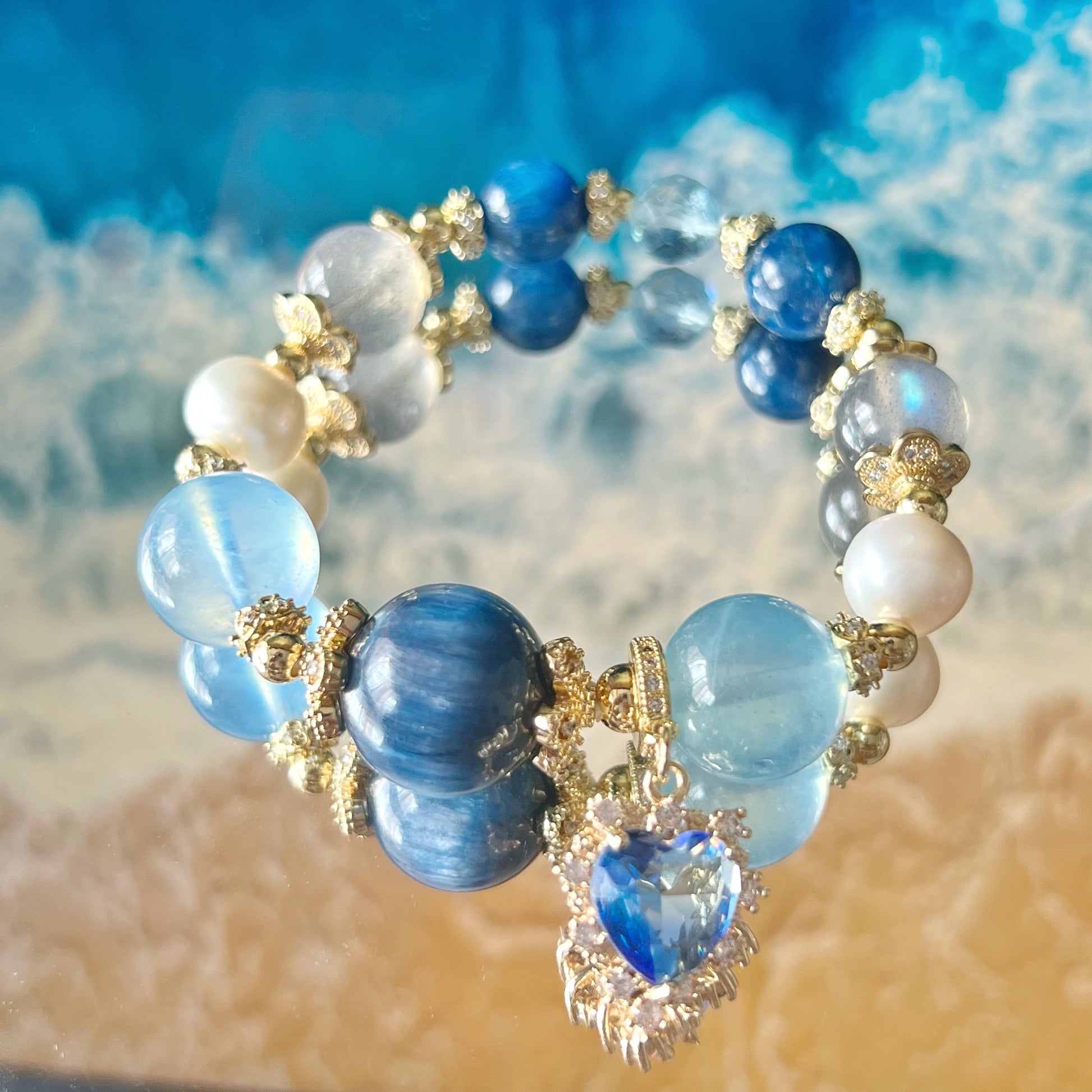 The Pacific bracelet embodies the vastness and tranquility of the ocean. With Premium Kyanite, Labradorite, and Aquamarine, it channels clarity, strength, and emotional calm—guiding you through life’s tides with balance and grace.