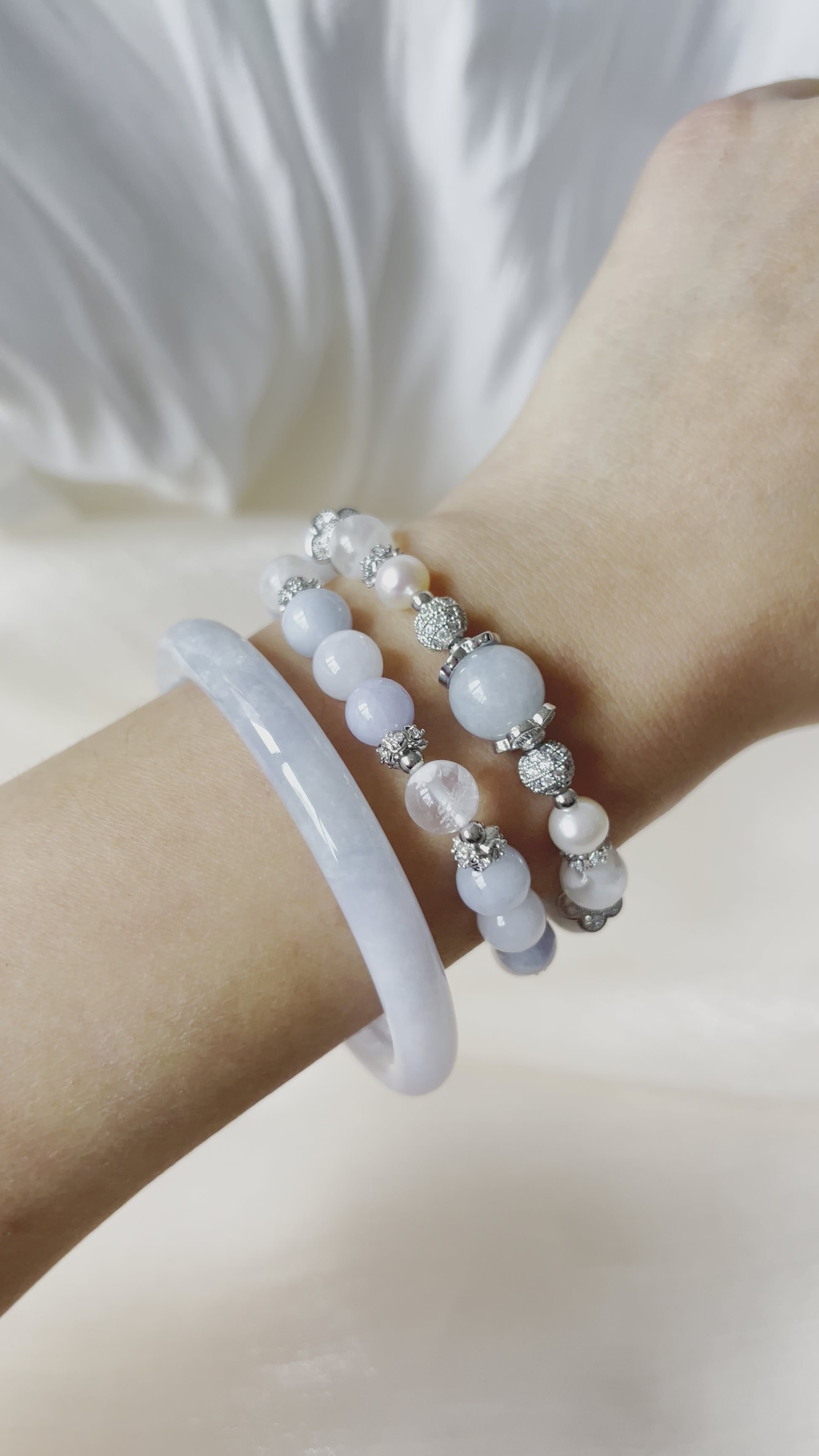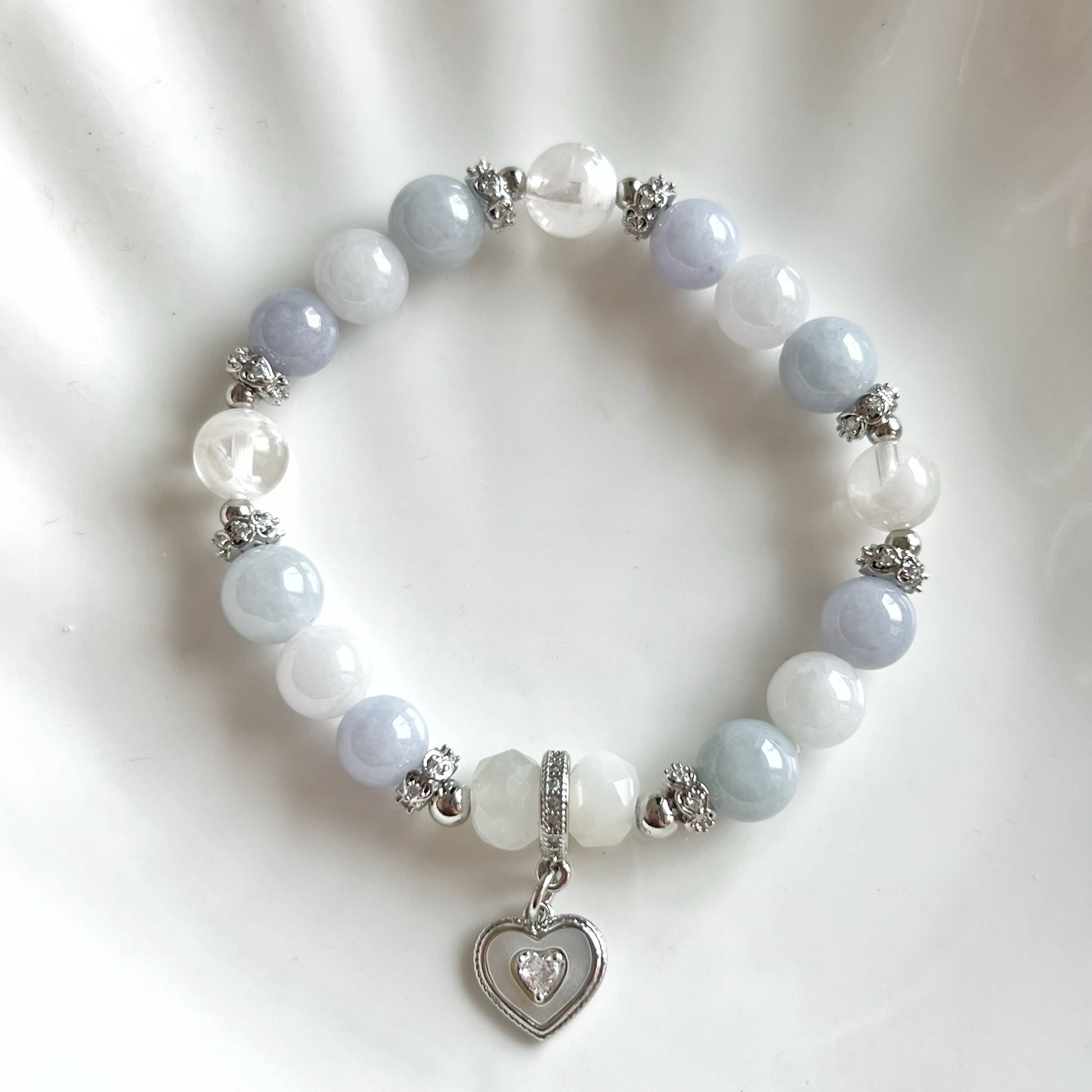 Inspired by Elsa’s icy elegance and inner strength, this bracelet combines Grade A Jade (Frost Blue, Lavender, White), Snowy Phantom Quartz, and Moonstone to bring serenity, emotional balance, and clarity. Each crystal works together to nurture the heart, enhance intuition, and provide protective energy.