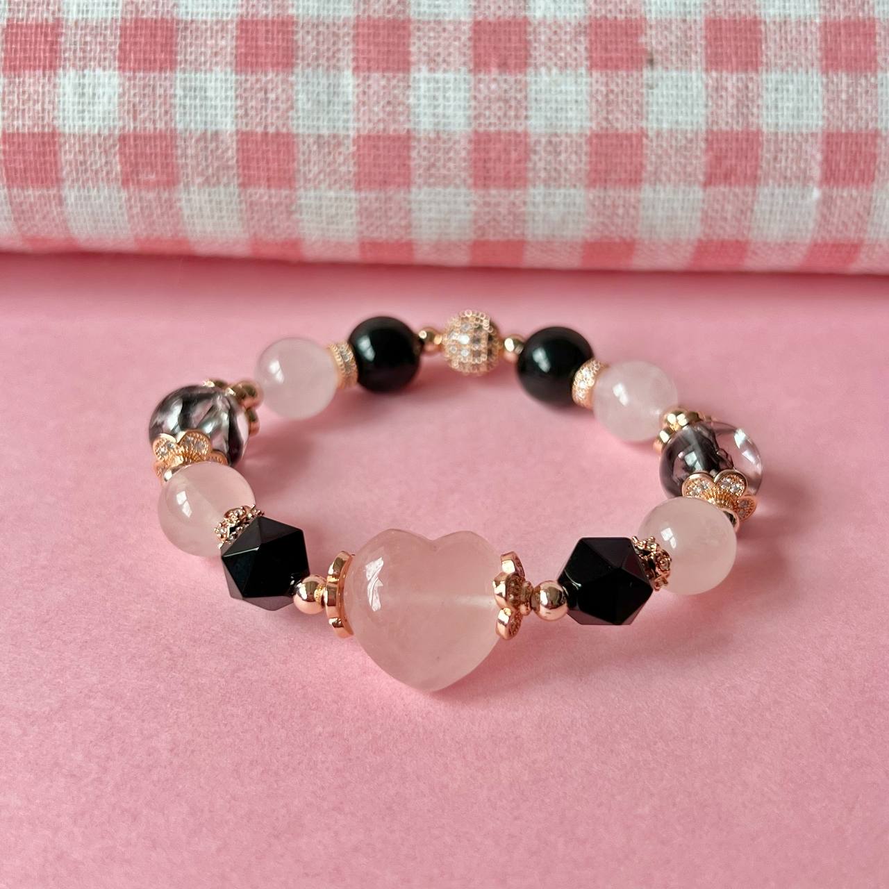 The Blackpink 1.0 Bracelet features a harmonious combination of Rose Quartz, Black Hematoid, and Obsidian, designed to promote emotional healing, inner strength, and protective energy. Perfect for those seeking balance, resilience, and a touch of elegance.