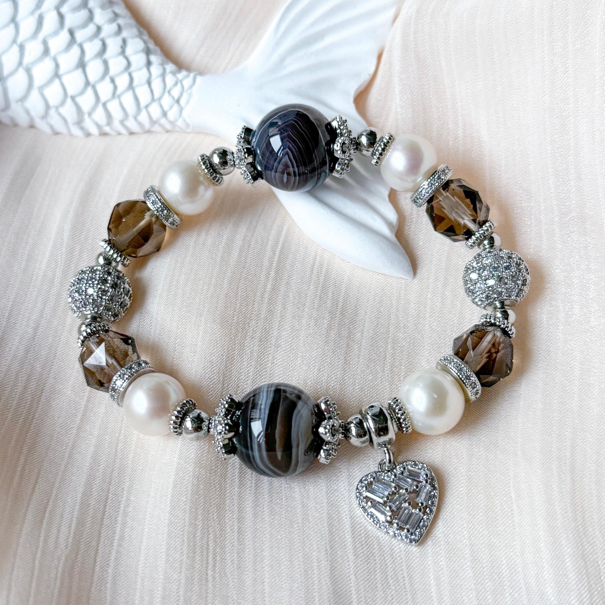 Each crystal and pearl is natural, with unique inclusions, shades, and surface patterns that add to its individuality.