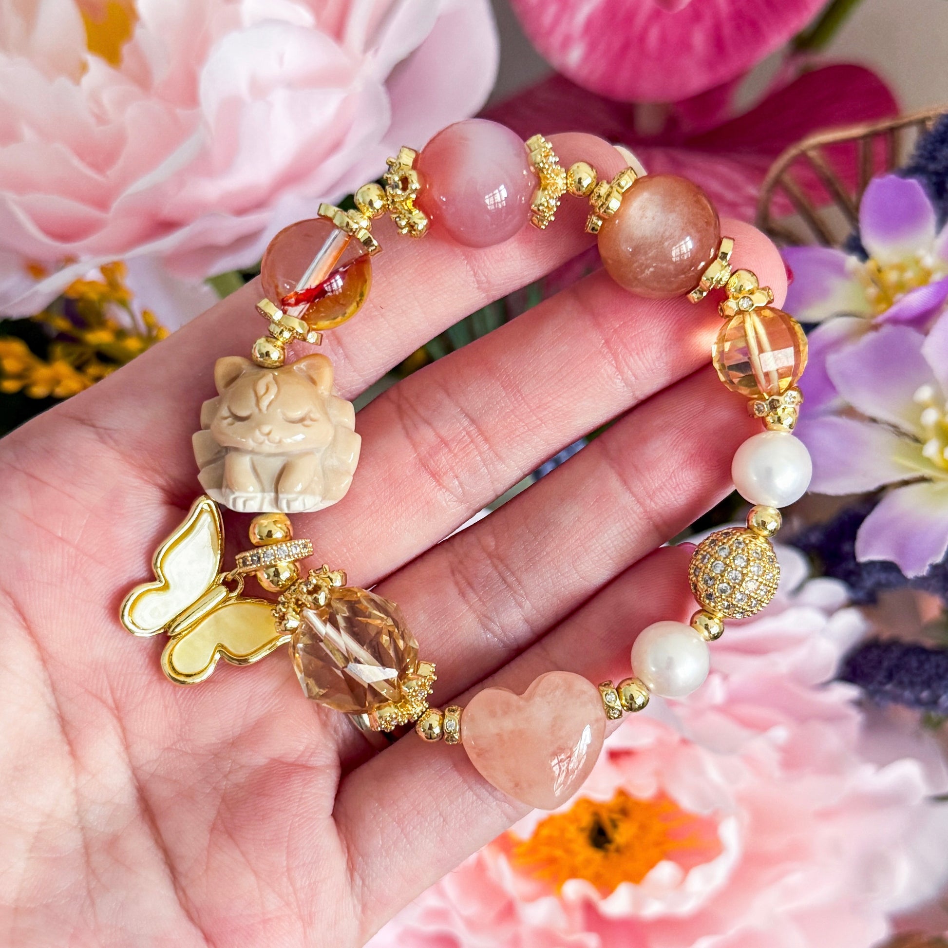 Inspired by the mystical nine-tailed fox, this bracelet embodies transformation, prosperity, and allure. Each crystal is carefully chosen to channel luck, vitality, and charm – perfect for those seeking abundance and renewal.