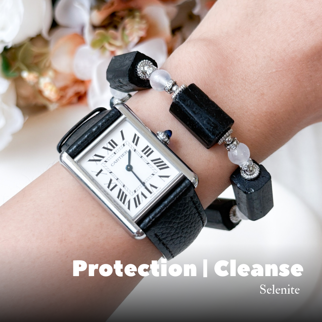Selenite – sweeps away stagnant energy, helping you start afresh while staying light and protected.