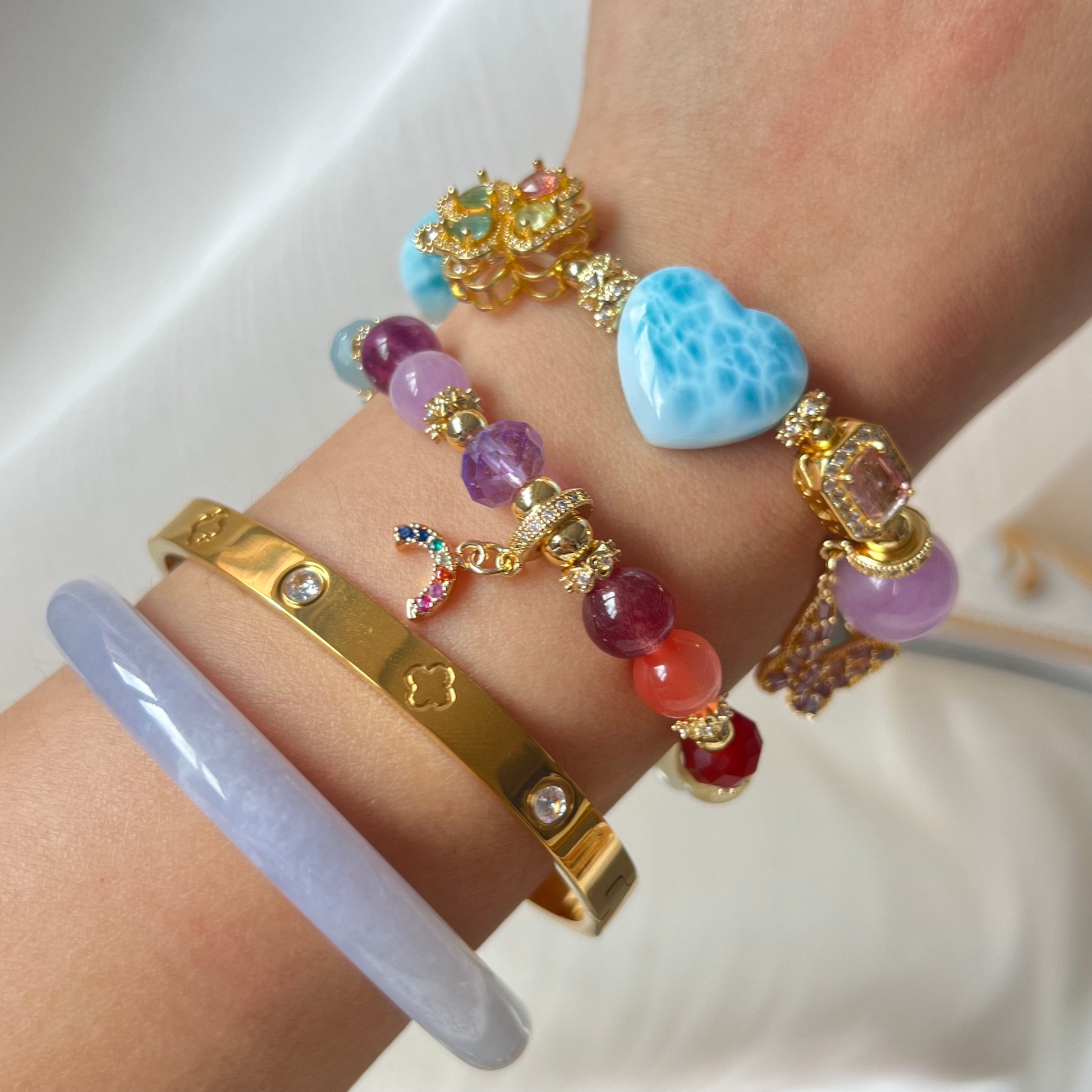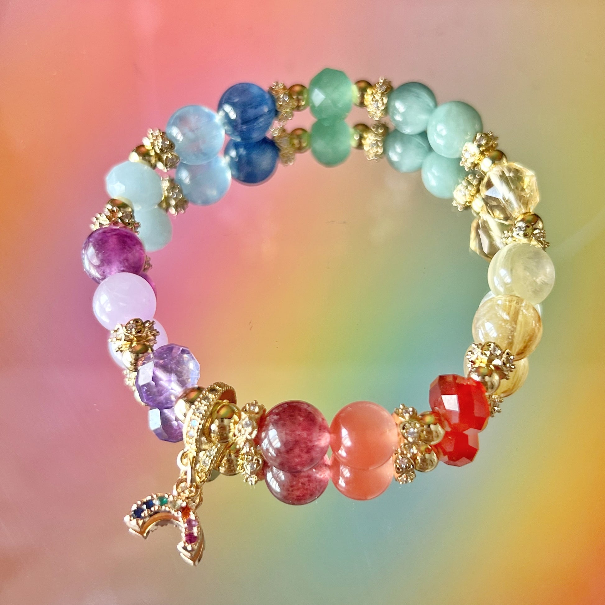 The Rainbow Bridge bracelet brings together 14 powerful crystals to guide you toward emotional balance, abundance, and well-being. Each stone works in synergy to calm the mind, support relationships, enhance creativity, and attract opportunities. Perfect for those seeking a holistic energy boost in body, heart, and spirit.